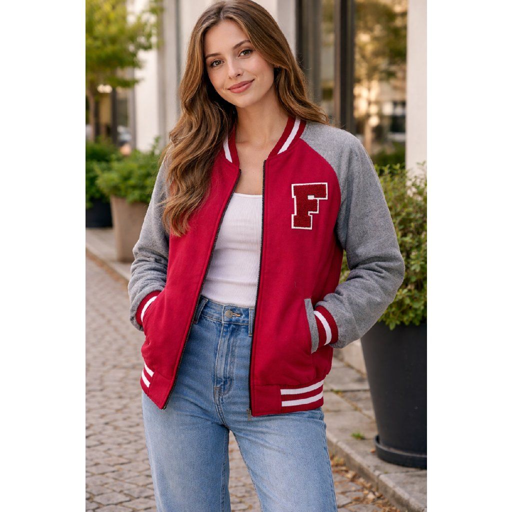 Stylová dámská mikina ve varsity stylu 💕 Moderní kombinace červené a šedé barvy s výrazným „F“ dodává outfitu sportovní i trendy vzhled. Skvěle se hodí na běžné nošení do města, do školy i na volný čas. Pohodlný střih a příjemný materiál zajistí komfort po celý den. ✨