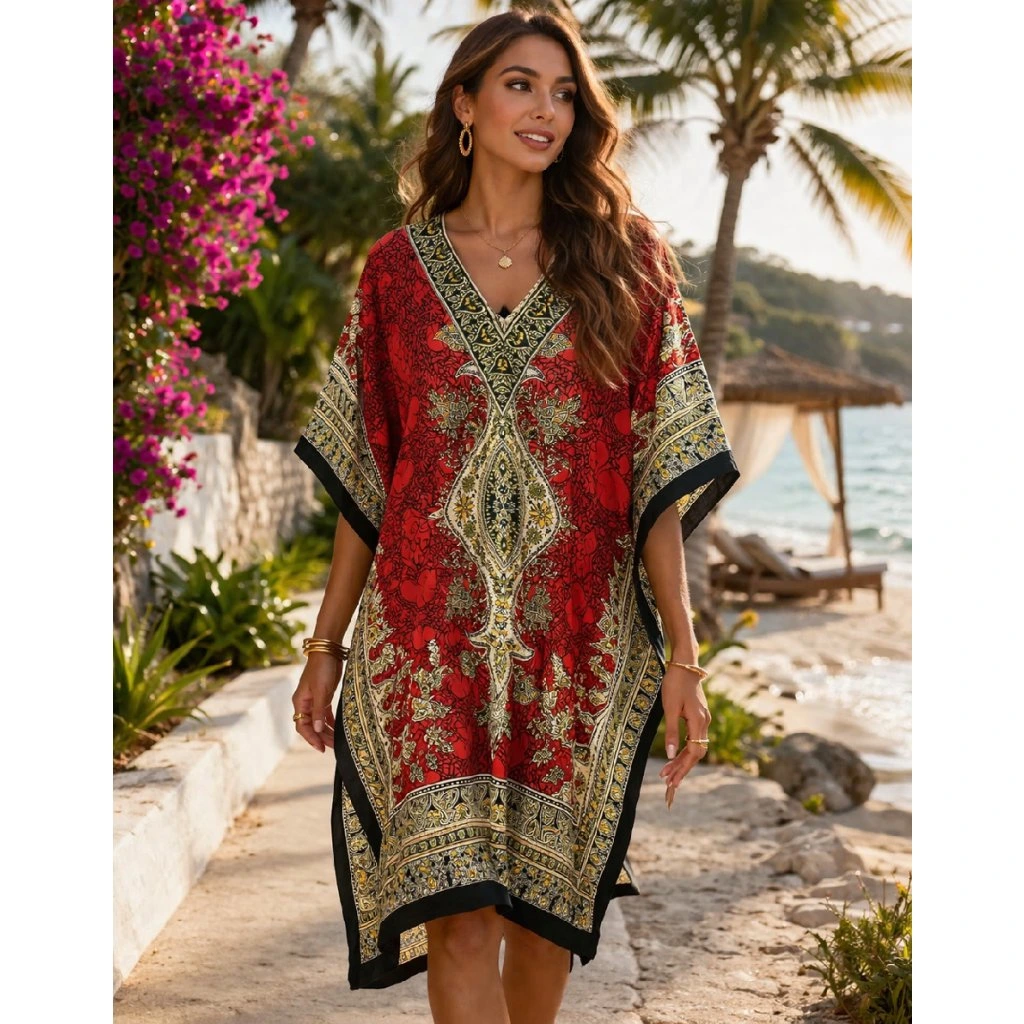 Stylový krátký kaftan s výrazným vzorem, ideální na léto k vodě i na běžné nošení. Lehký a vzdušný materiál zajistí pohodlí i v horkých dnech.