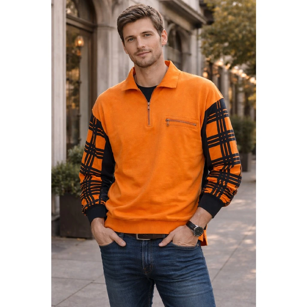 Pánská mikina v oranžové barvě 🧡 Zajímavý design rukávů, pohodlný střih – ideální na volný čas i do města 👌