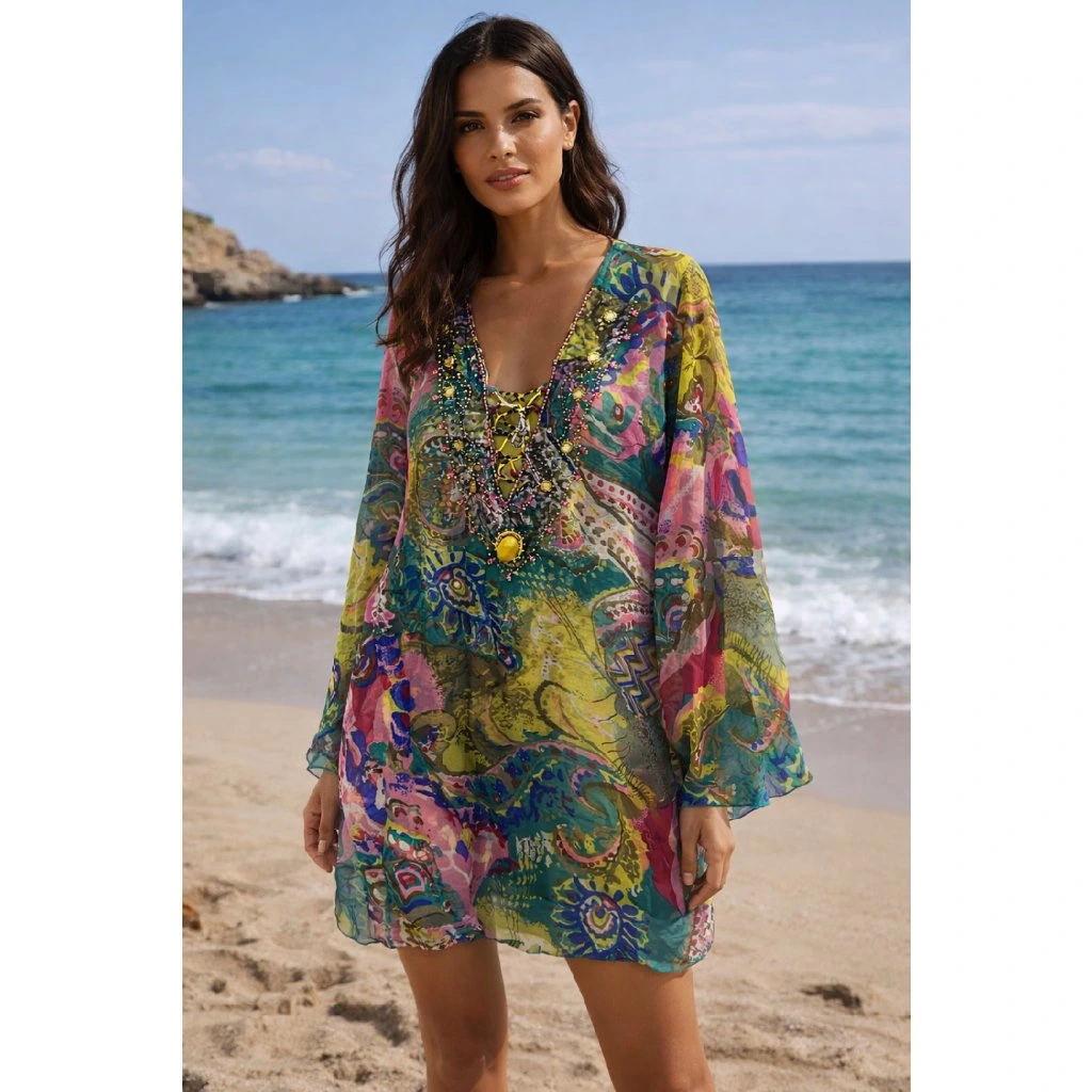 Jemná plážová dlouhá tunika. Halenka má jednotnou velikost. Před objednáním si prosím zkontrolujte míry.