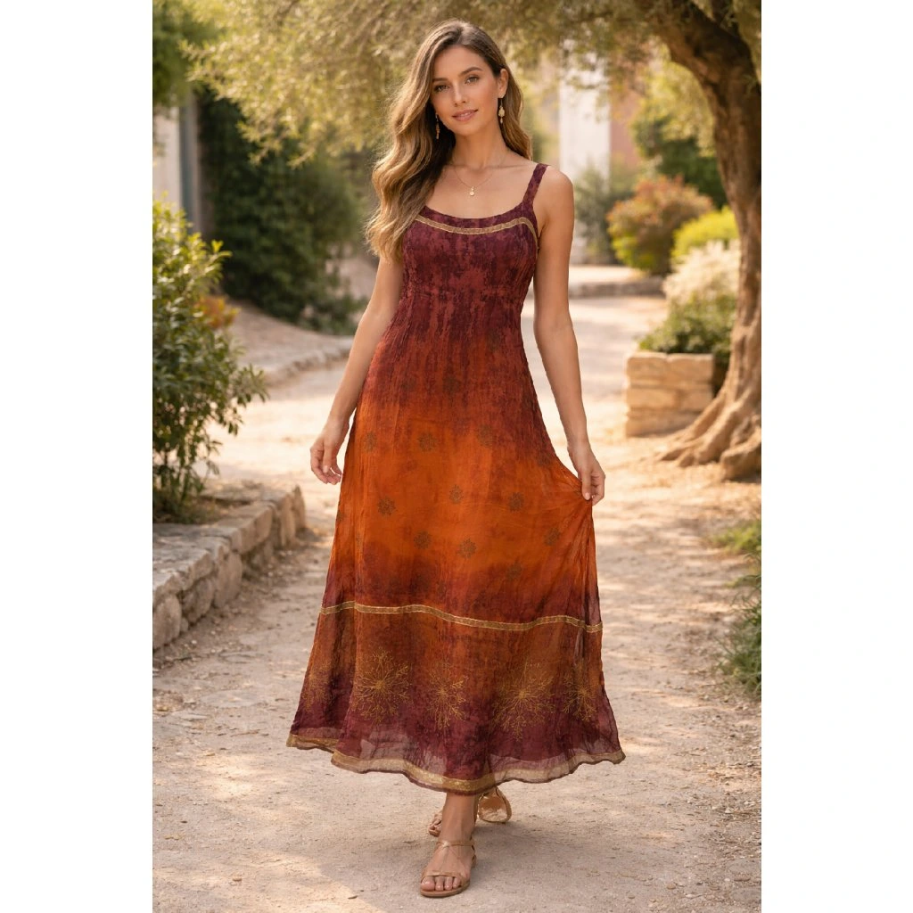 Lehké letní šaty v teplých tónech s jemným vzorem 🌿
