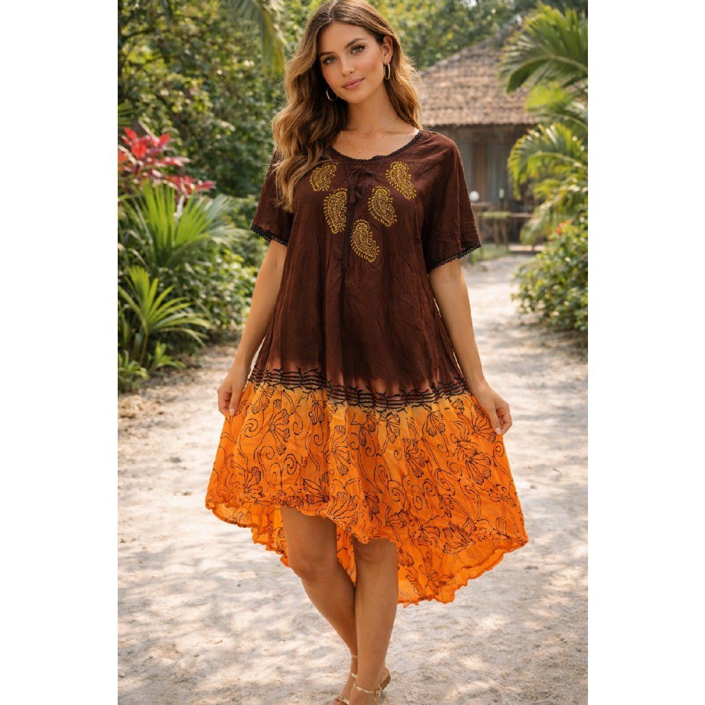 Boho šaty v teplých zemitých tónech 🤎🧡 Lehký, vzdušný materiál a volný střih zajišťují maximální pohodlí, zatímco výrazná kombinace hnědé a oranžové s jemnými vzory dodává outfitu originální a hravý nádech. Ideální na léto, dovolenou i pohodové dny ve městě.