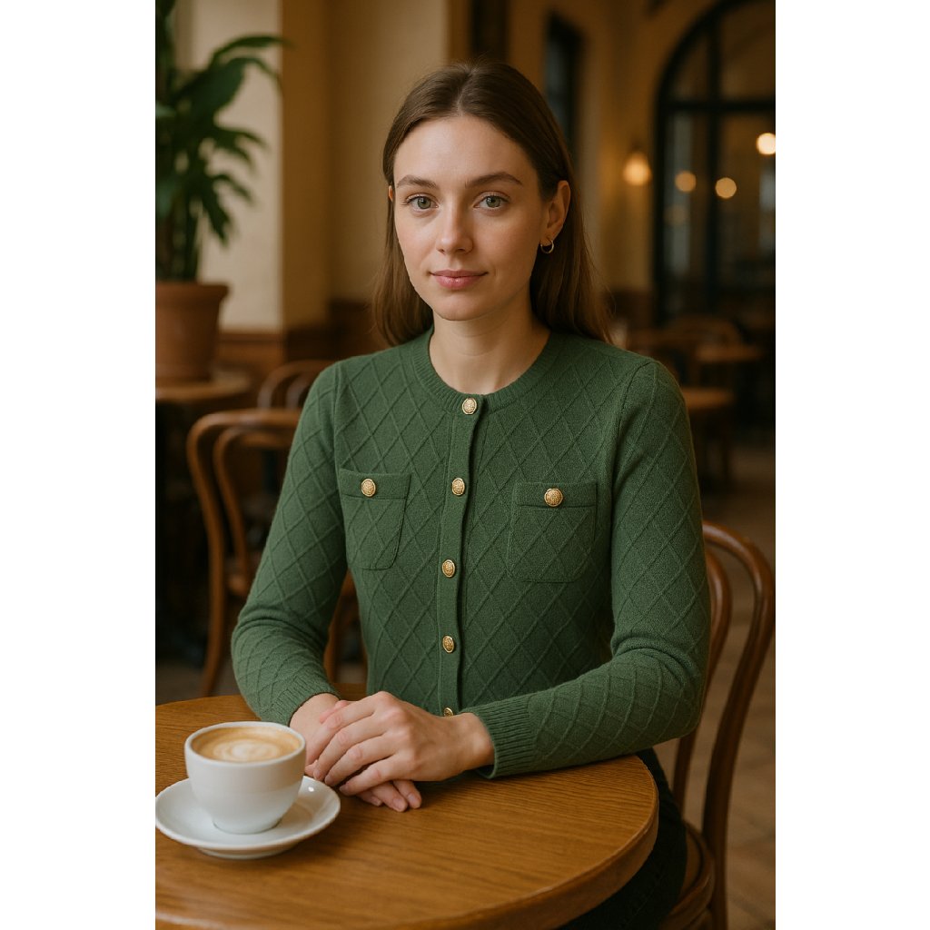ZIMA-Svetr se zlatými knoflíky zelený