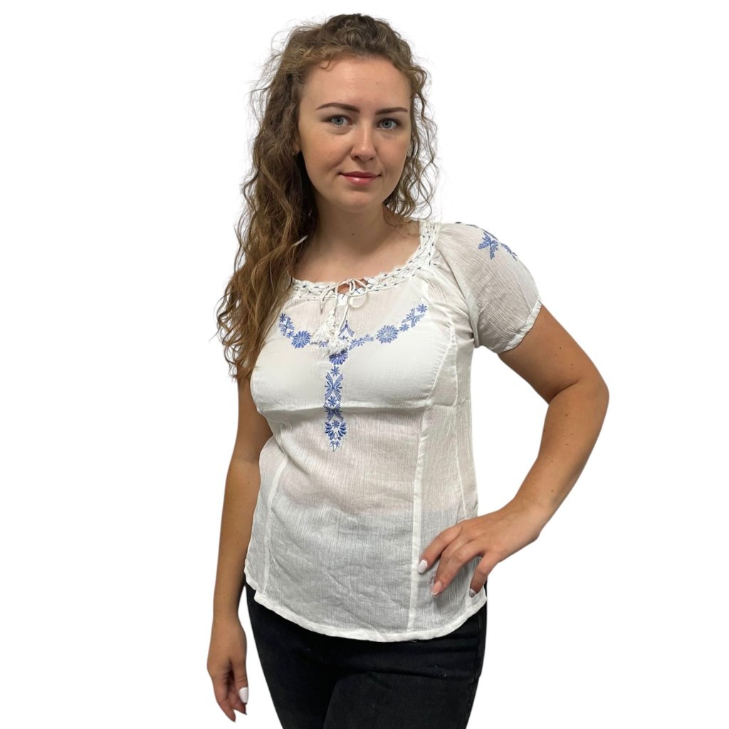 Velmi lehká a příjemná halenka s výšivkou. Halenka je vyrobena ze 100% bavlny. Druhá jakost z důvodu možnosti lehkého zašpinění.