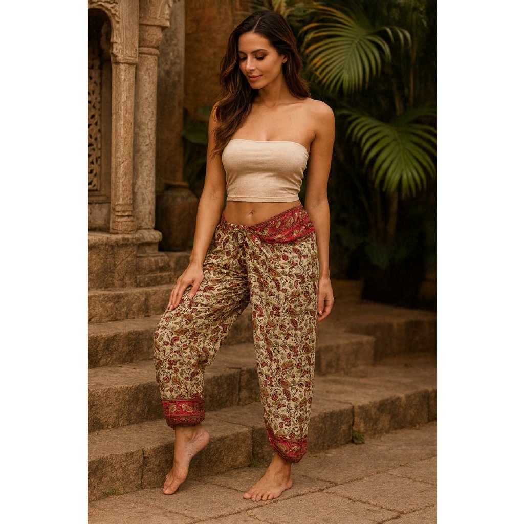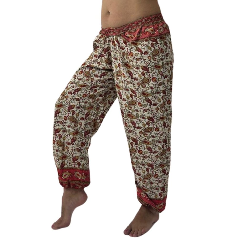 Oblíbené pohodlné kalhoty. V pase na gumu a na zavazování,dole má volné nohavice. Jednotná velikost.