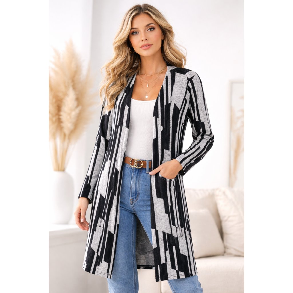 kardigan - černo/bílá geometrie
