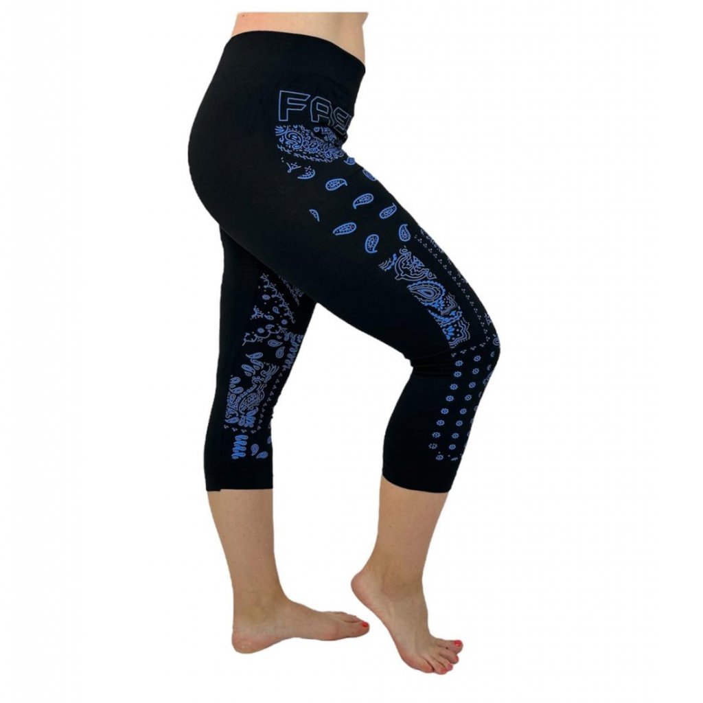 NOVINKA-Dámské legíny tříčtvrteční sportovní - Černé s modrým vzorem