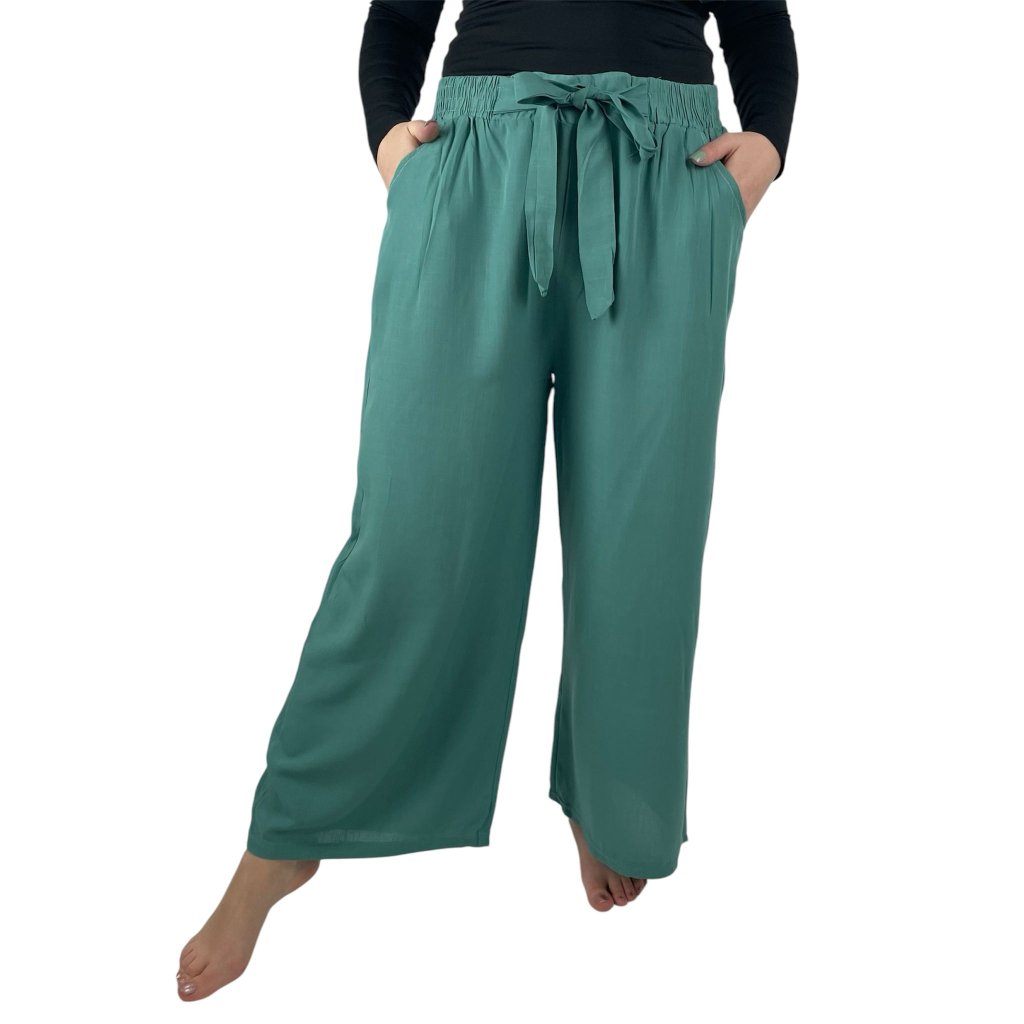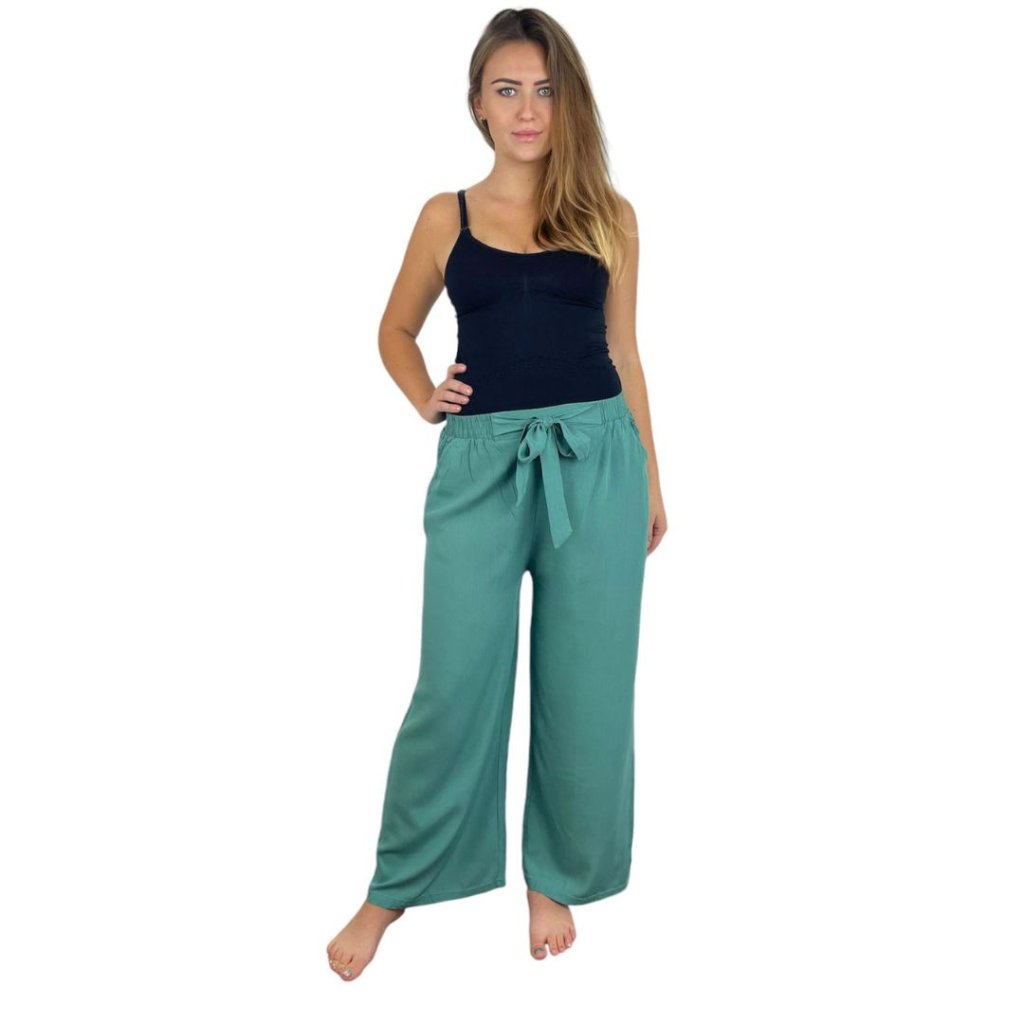 NOVINKA- Elegantní kalhoty s širokými nohavicemi - tyrkysové