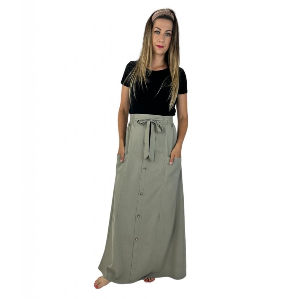 NOVINKA-Ležérní sukně s knoflíčky a kapsami - béžová