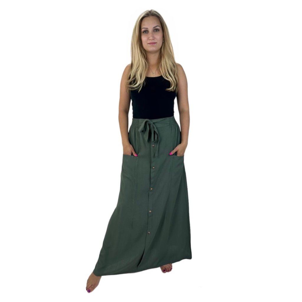 NOVINKA-Ležérní sukně s knoflíčky a kapsami - zelená