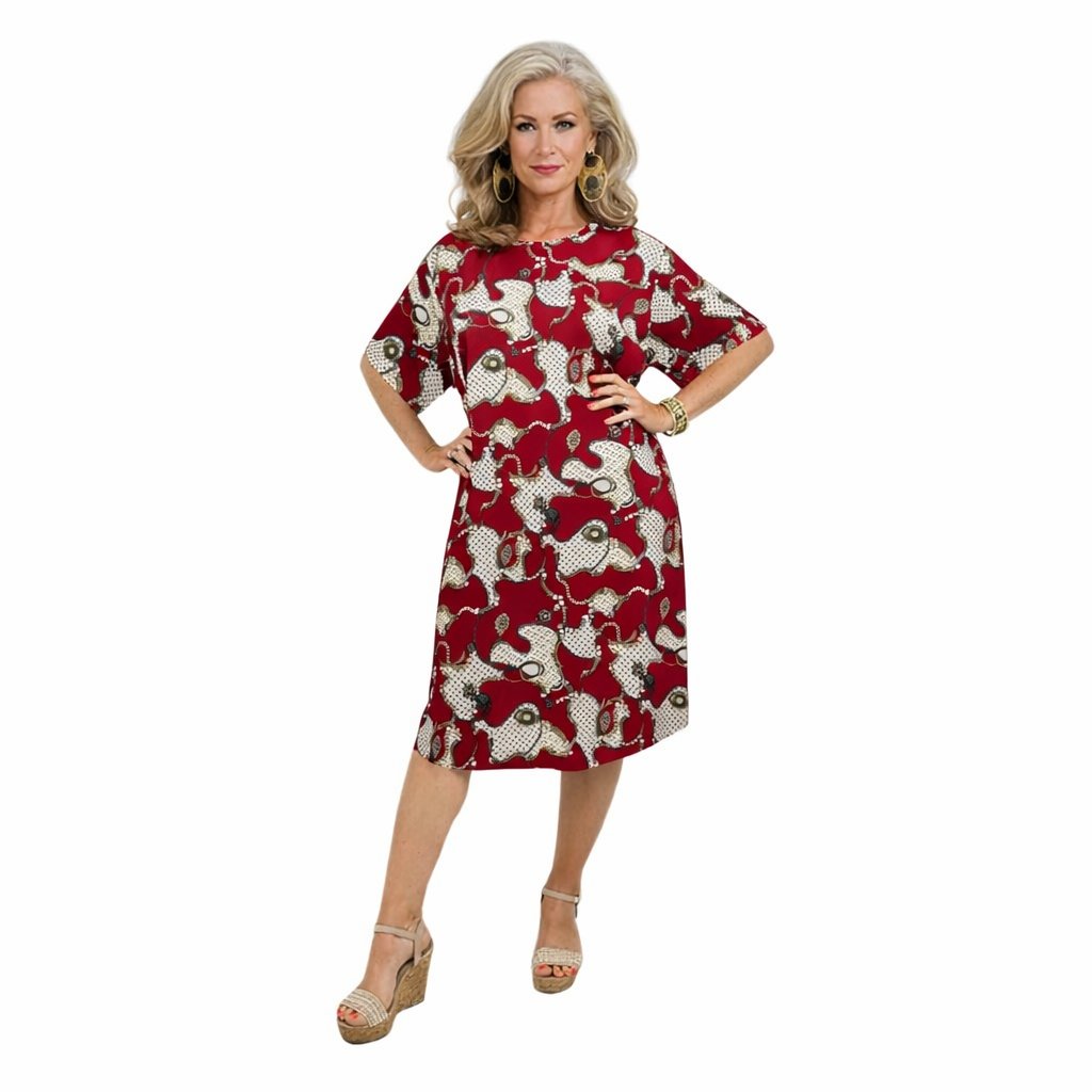 Šaty s rukávky - červené - Geometric