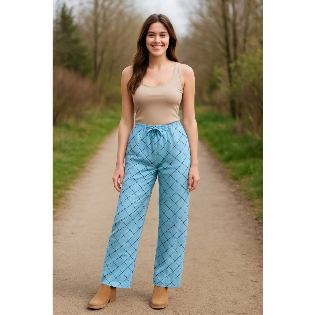 NOVINKA- Volné kalhoty s károvaným vzorem - modré