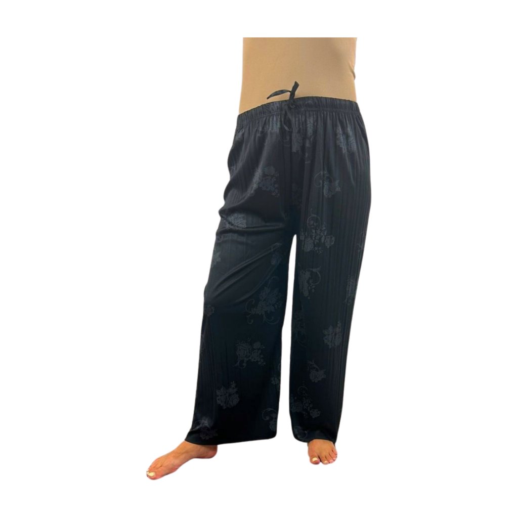 NOVINKA- Volné kalhoty s velkým květinovým vzorem - černé