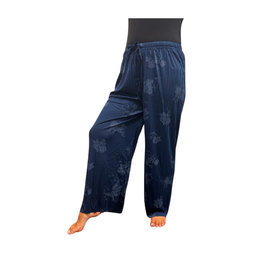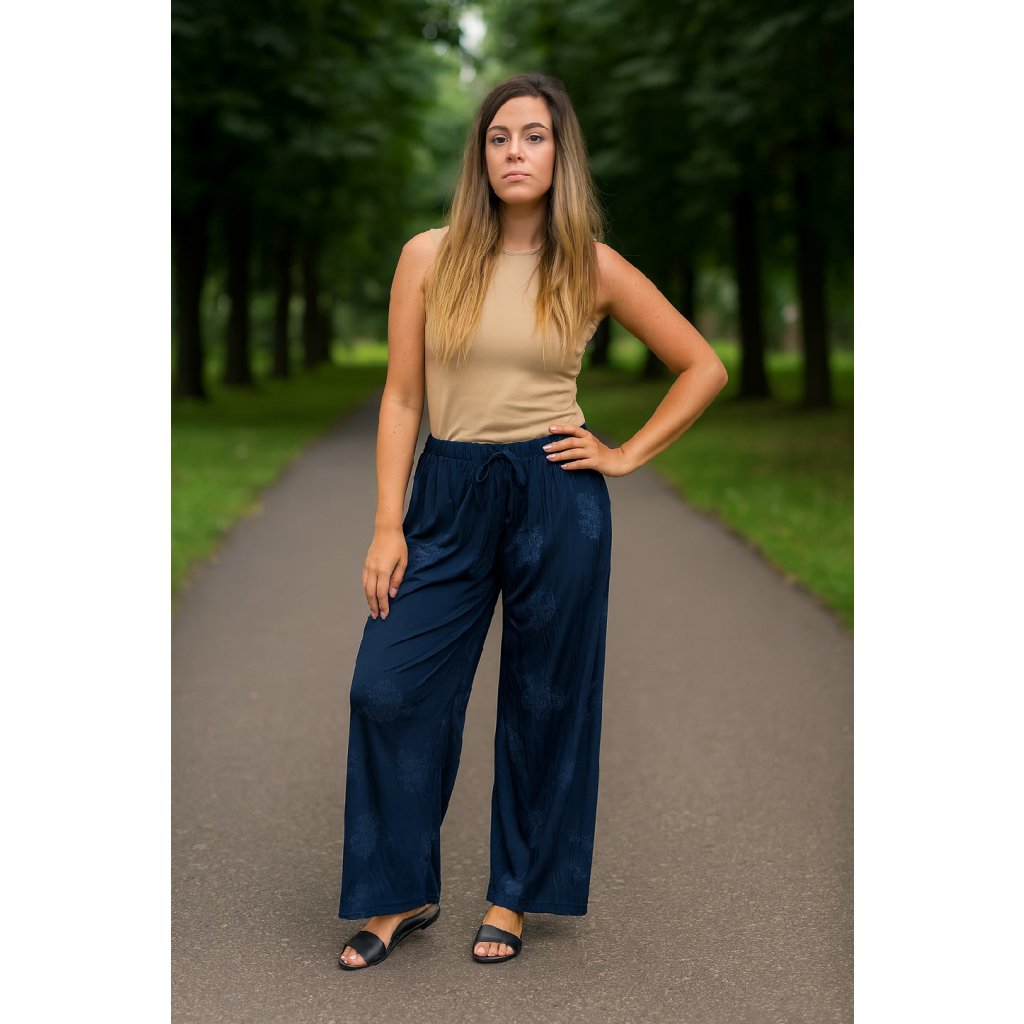 NOVINKA- Volné kalhoty s velkým květinovým vzorem - tmavě modré