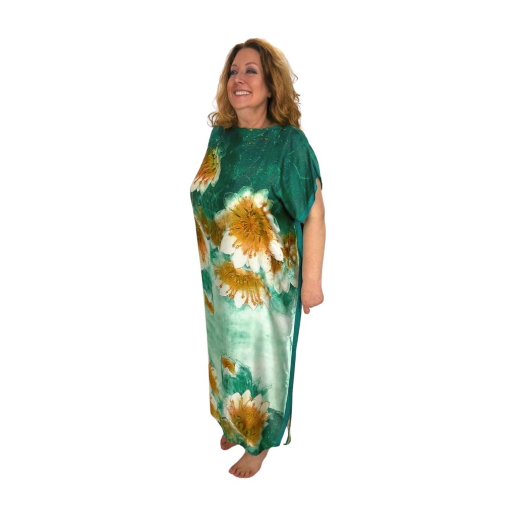 Šaty, BOHO, kaftan, dlouhé šaty s hedvábnou úpravou - 7271