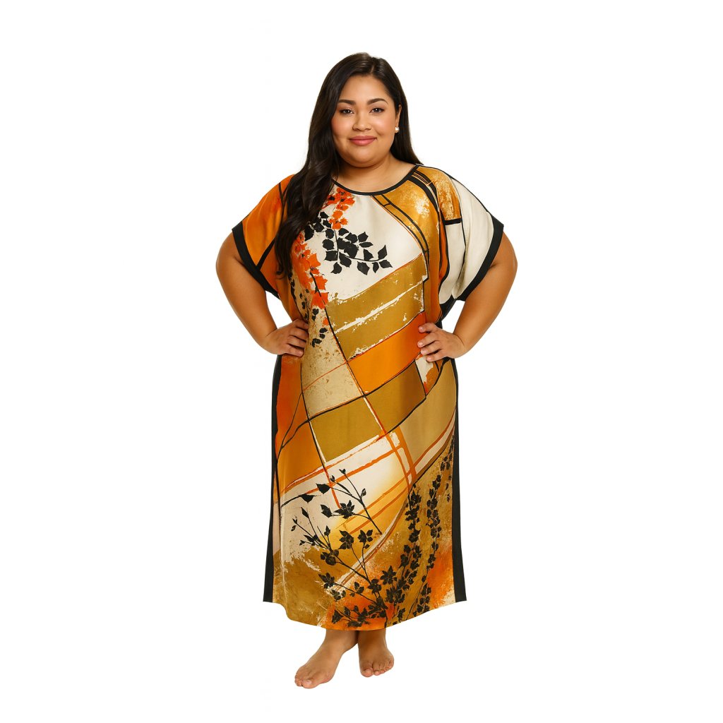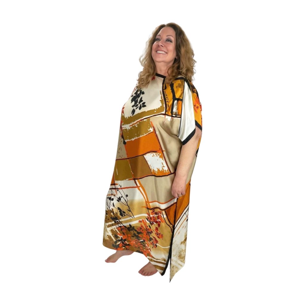 Šaty, BOHO, kaftan, dlouhé šaty s hedvábnou úpravou - 7273
