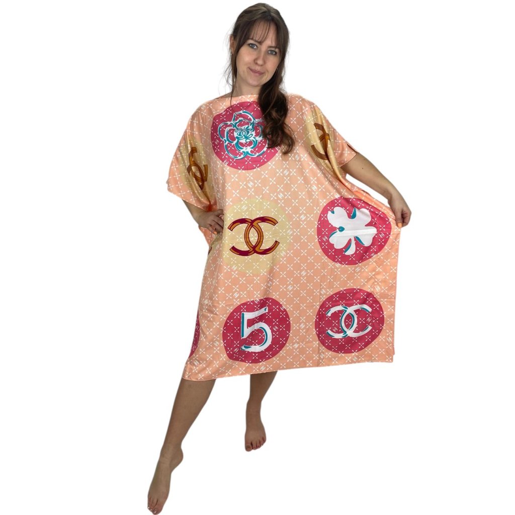 Hedvábné šaty v krásných moderních vzorech. Šaty jsou volné rovného střihu. Šaty mají jednotnou velikost, před objednáním prosím zkontrolujte míry.