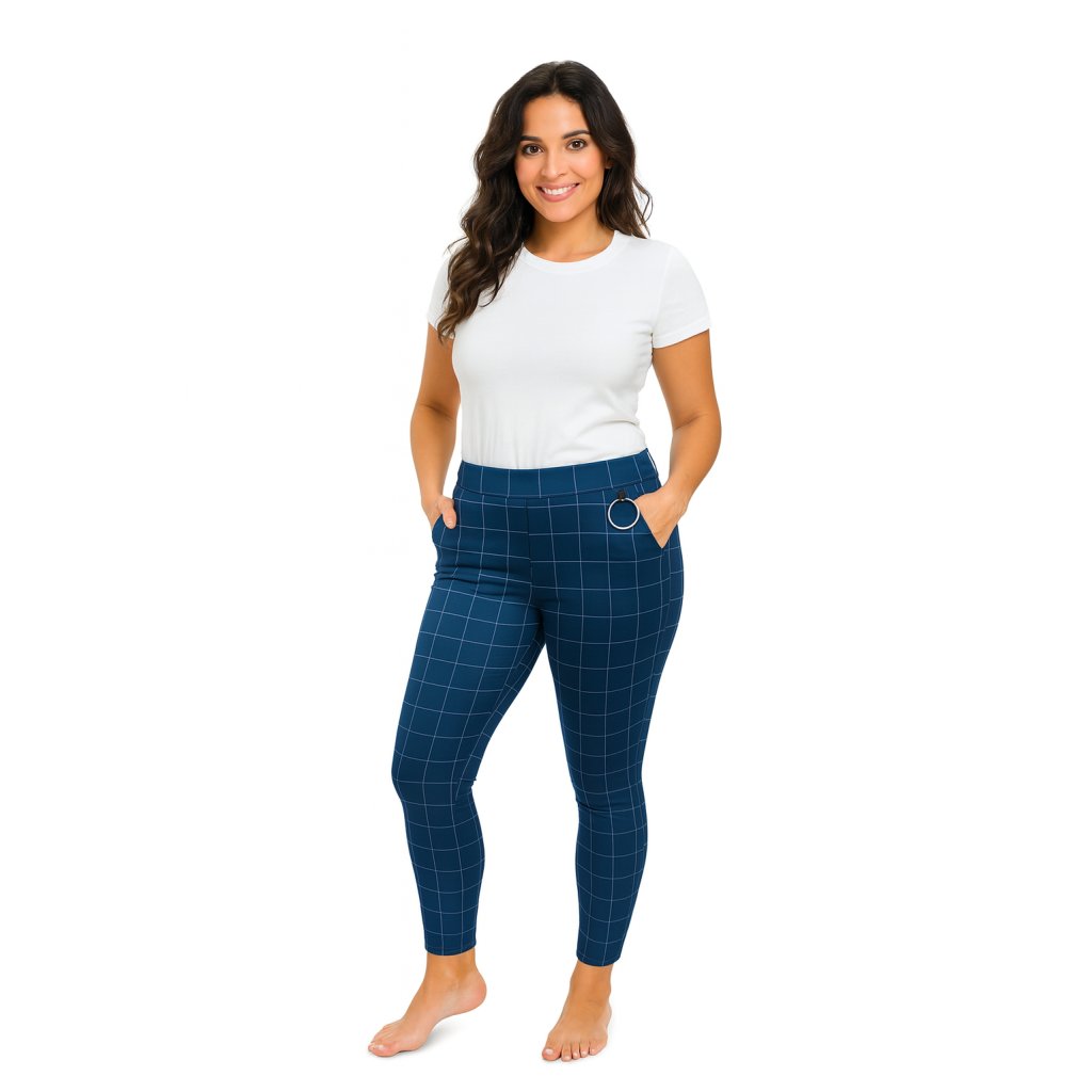 VÝPRODEJ-Dámské kostkované legíny - modré