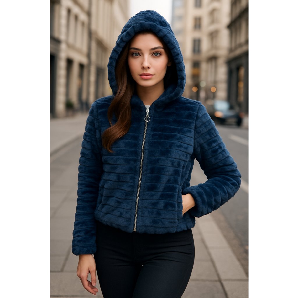 Výprodej-Polar fleece bundička s kapucí -pruhy -Modrá