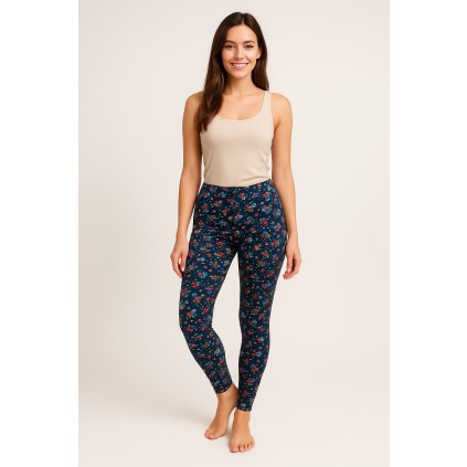 Dámské legíny se vzorem jemných květinek. Legíny mají nohavice staženy do gumičky. Hodí k dennímu nošení jak na ven, tak na doma. Zkontrolujte si míry legín v detailních...