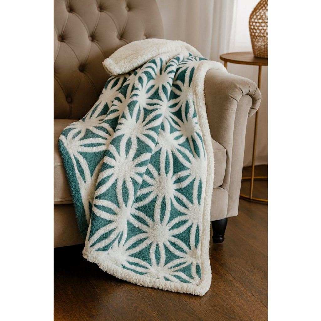 Beránková deka Květinka 200 x 230 cm - tyrkys