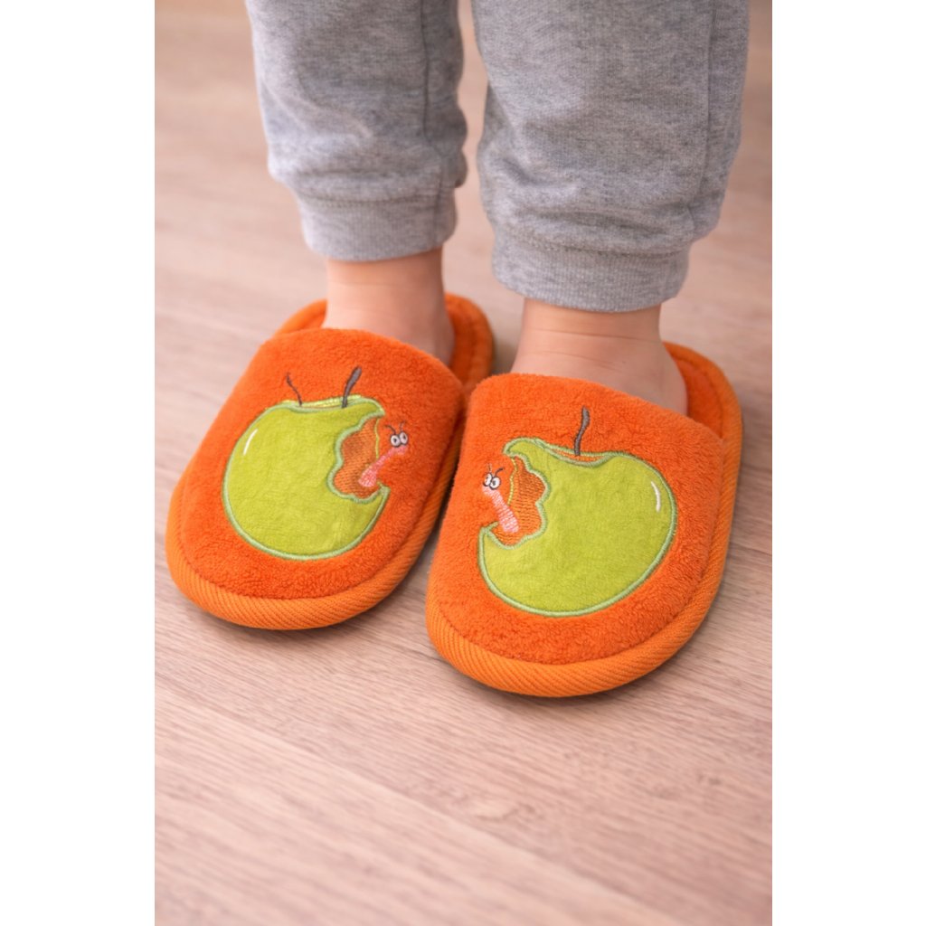 Dětské bačkory - oranžové s jablíčkem 9