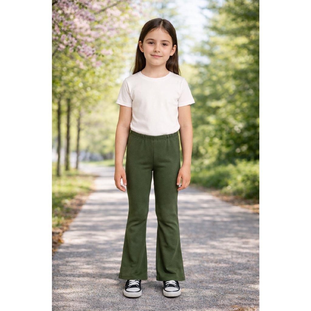 Dívčí legíny s rozšířenými nohavicemi - khaki