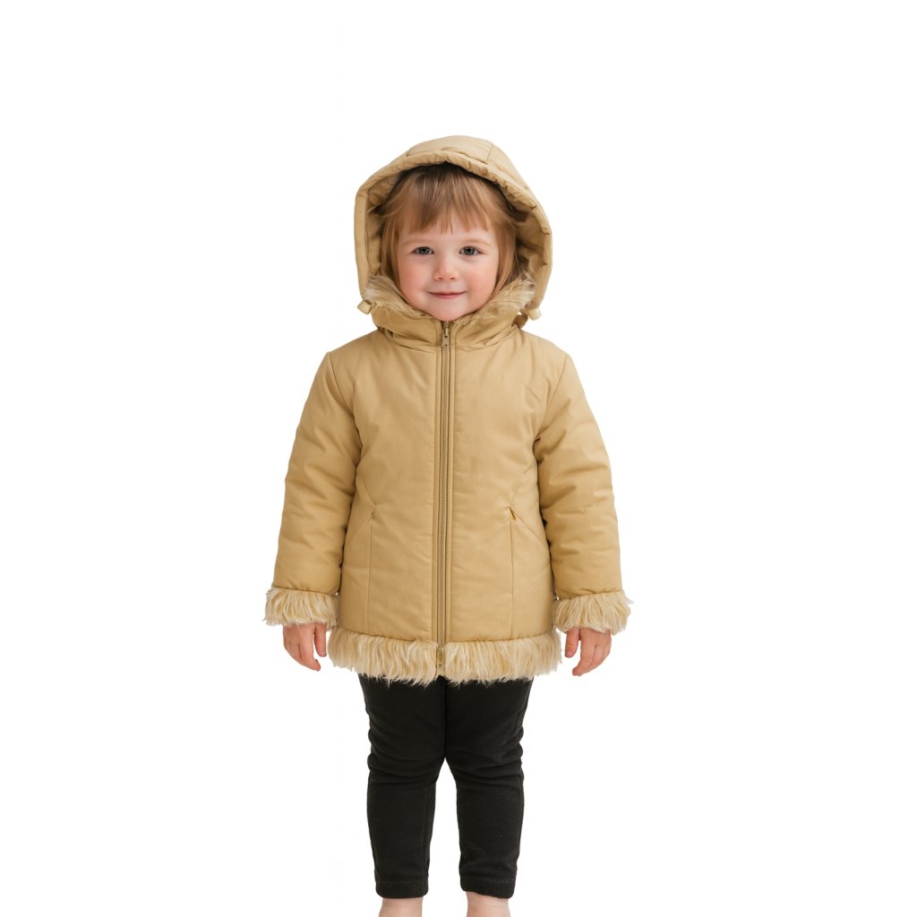 ZIMA-Dětská bunda s kapucí lemovaná kožíškem - béžová