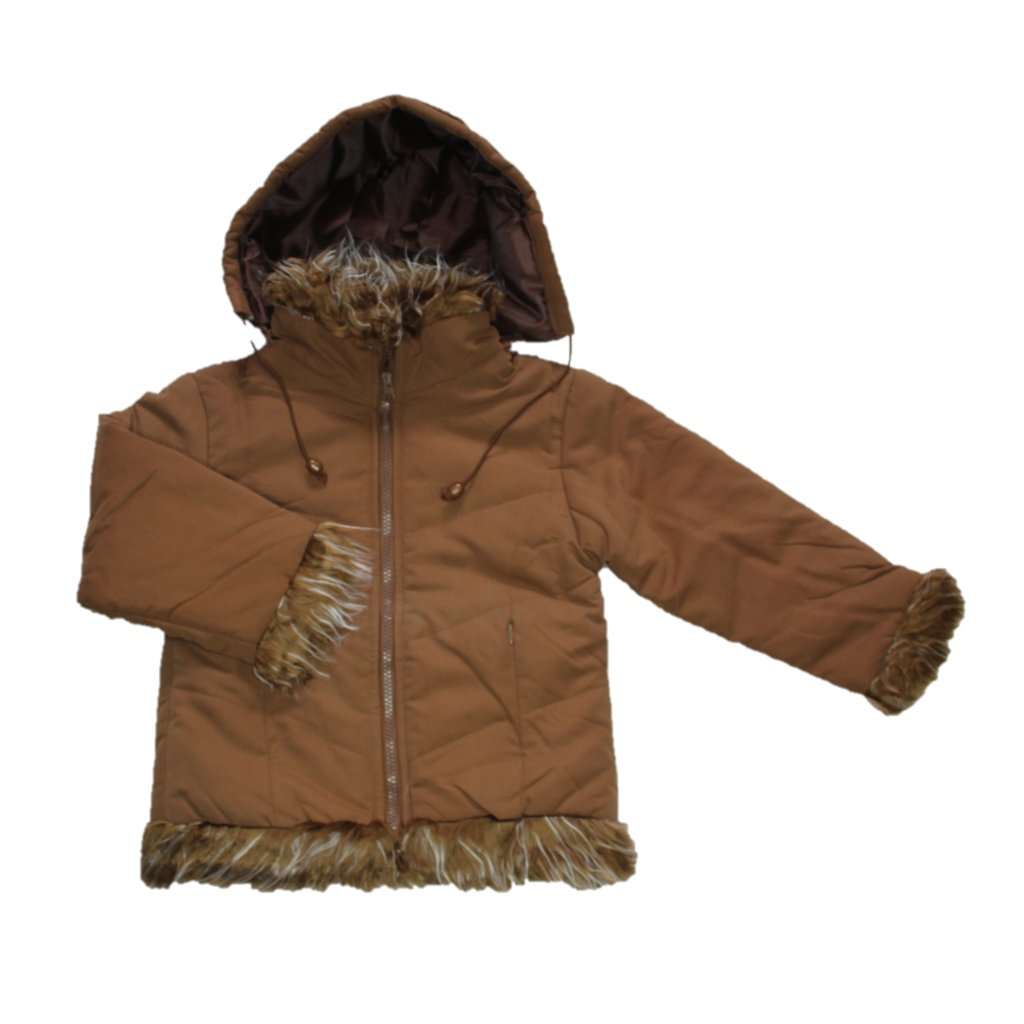 ZIMA-Dětská bunda s kapucí lemovaná kožíškem - hnědá