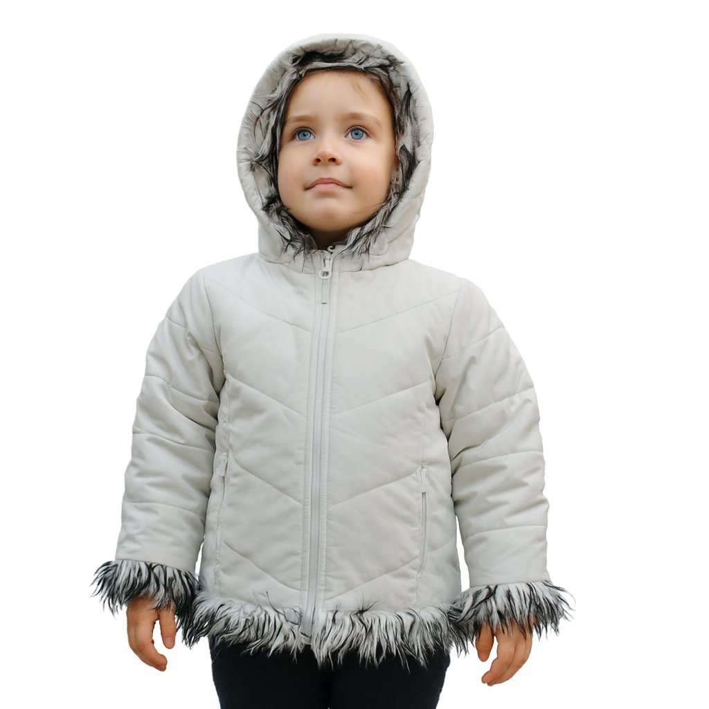 ZIMA-Dětská bunda s kapucí lemovaná kožíškem - krémová