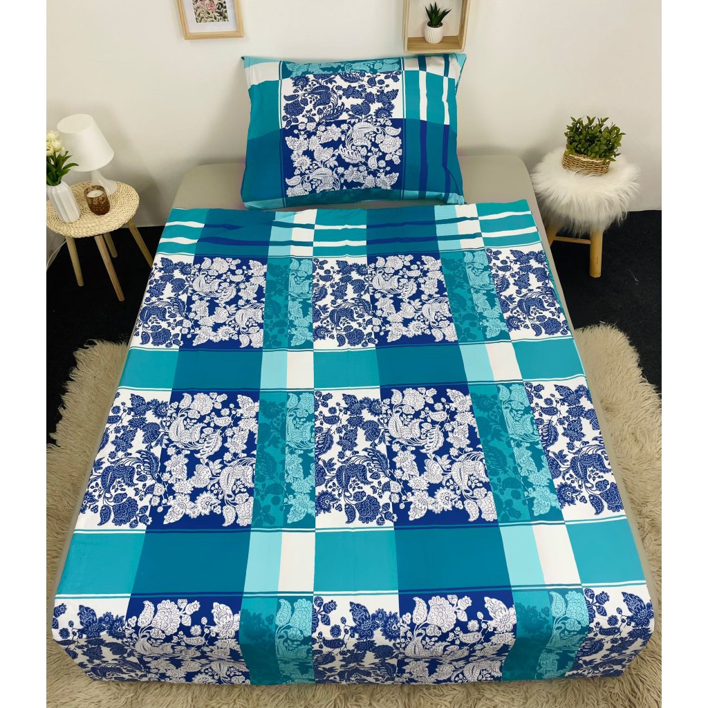 Bavlněné povlečení, jednolůžko - Květy v tyrkysu