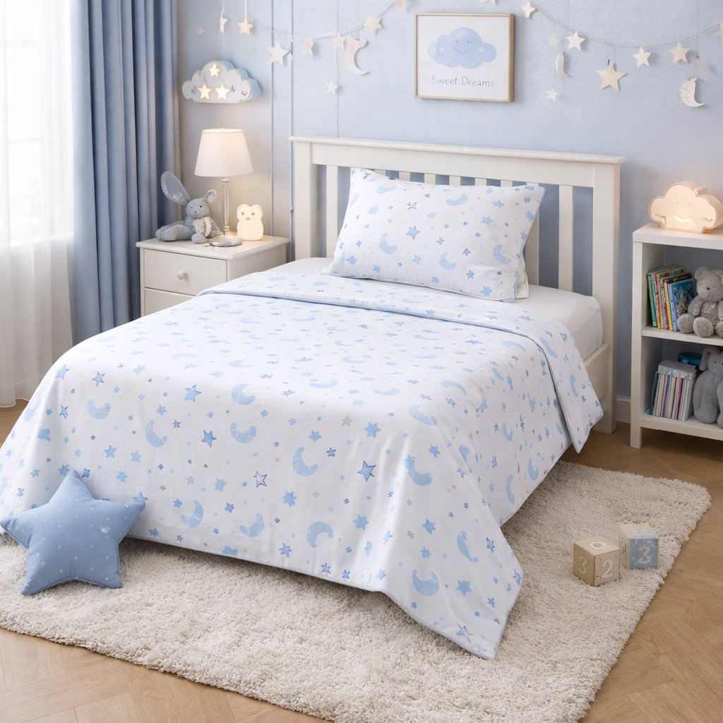 Dětské bavlněné povlečení, jednolůžko - Modrý Měsíček a hvězdičky