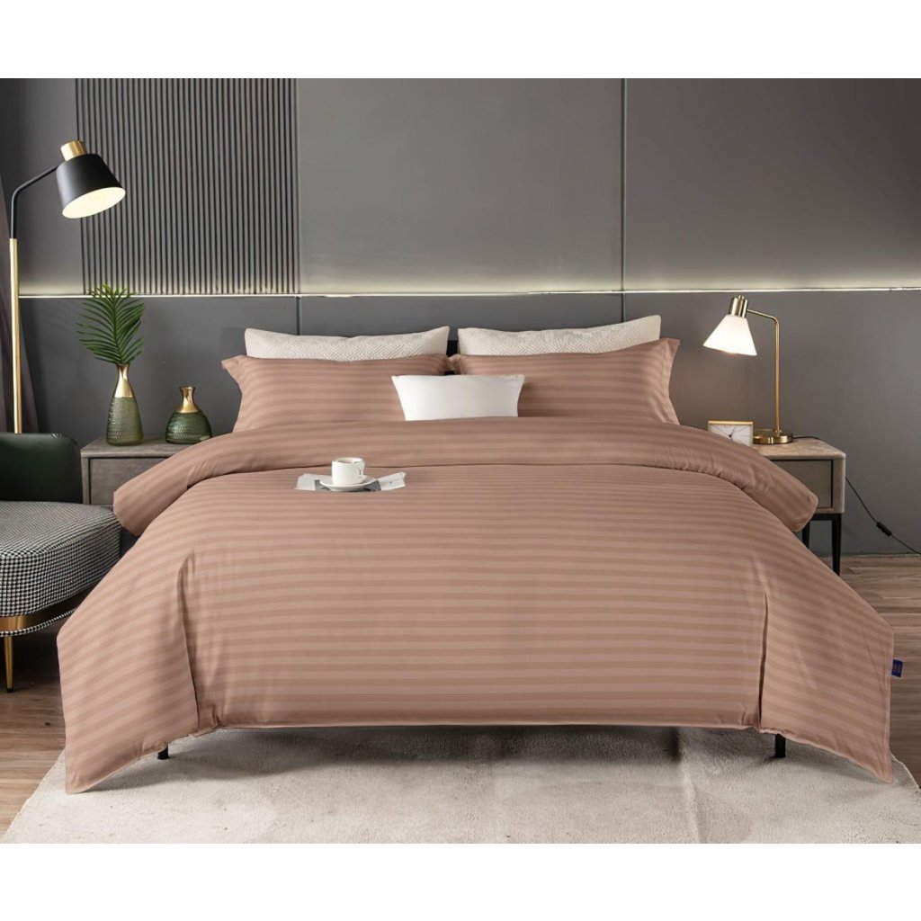 Dvoudílné ložní povlečení, jednolůžko - Jemné proužky Světle hnědá