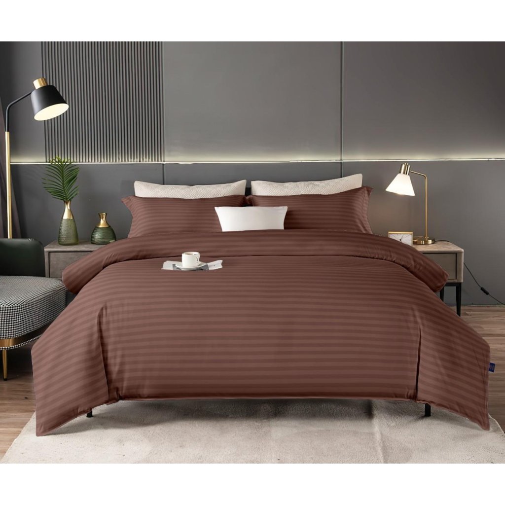 Dvoudílné ložní povlečení, jednolůžko - Jemné proužky Tmavě hnědá