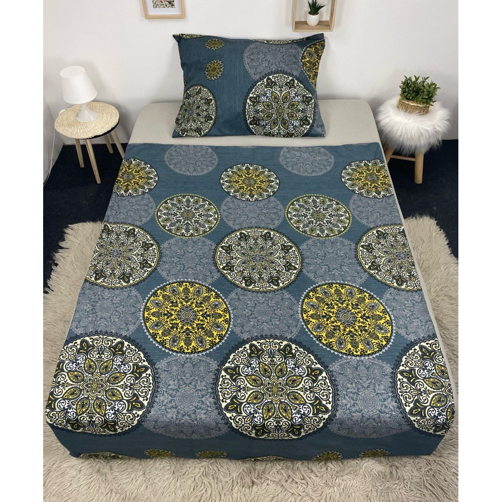 Dvoudílné ložní povlečení, jednolůžko - Žlutá mandala v šedé