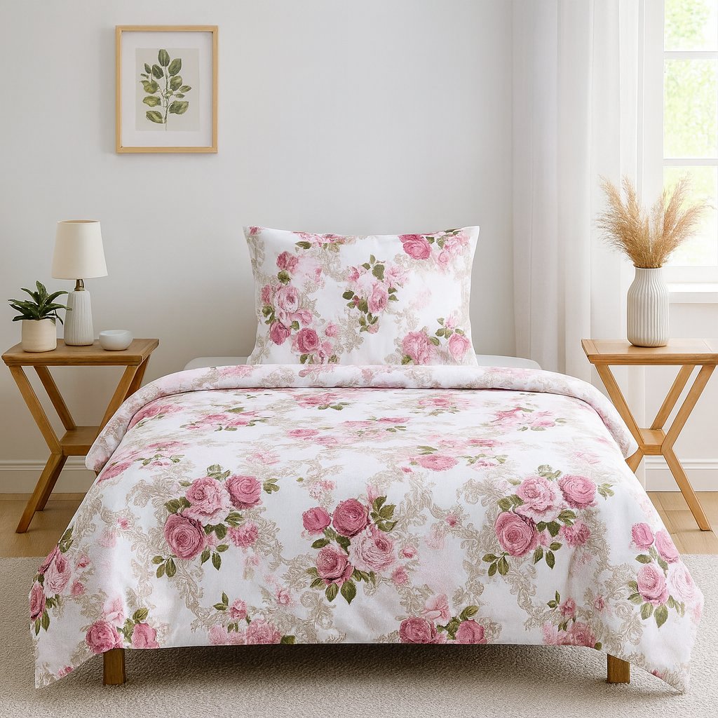 Bavlněné povlečení, jednolůžko - růžová růže s ornamenty