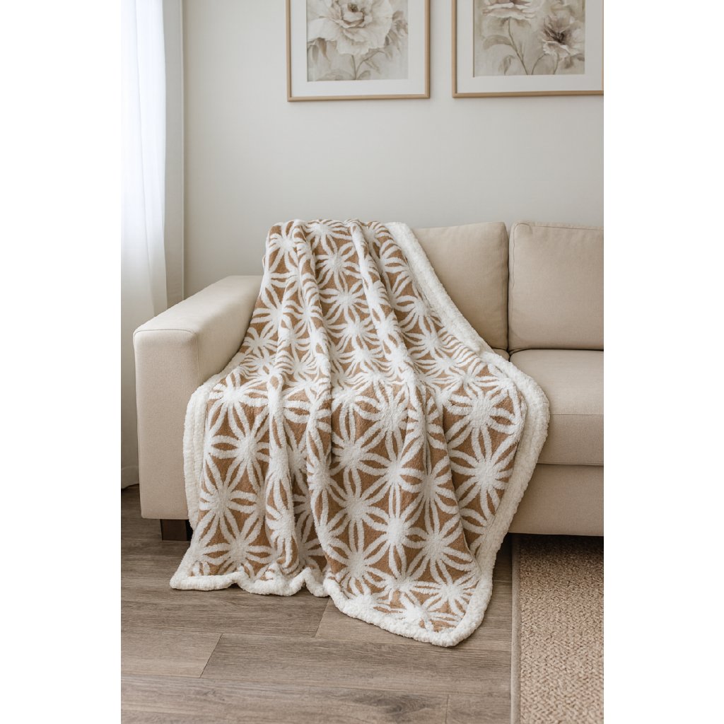 Beránková deka Květinka 200 x 230 cm - hnědá