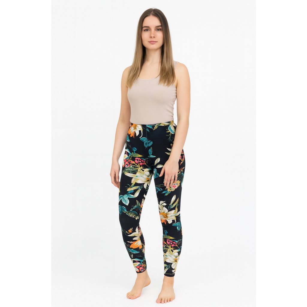 NOVINKA- Dámské dlouhé legíny se vzorem- Bílé květy