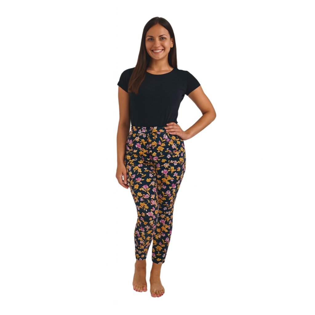 NOVINKA- Dámské legíny černé s drobnými kvítky