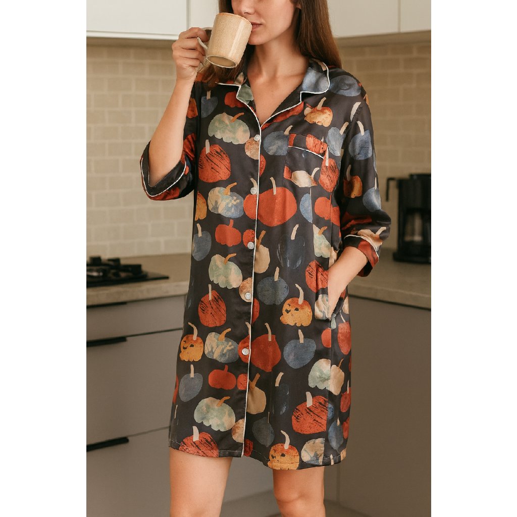 Saténová noční košilka s tříčtvrtečními rukávy - JABLÍČKA