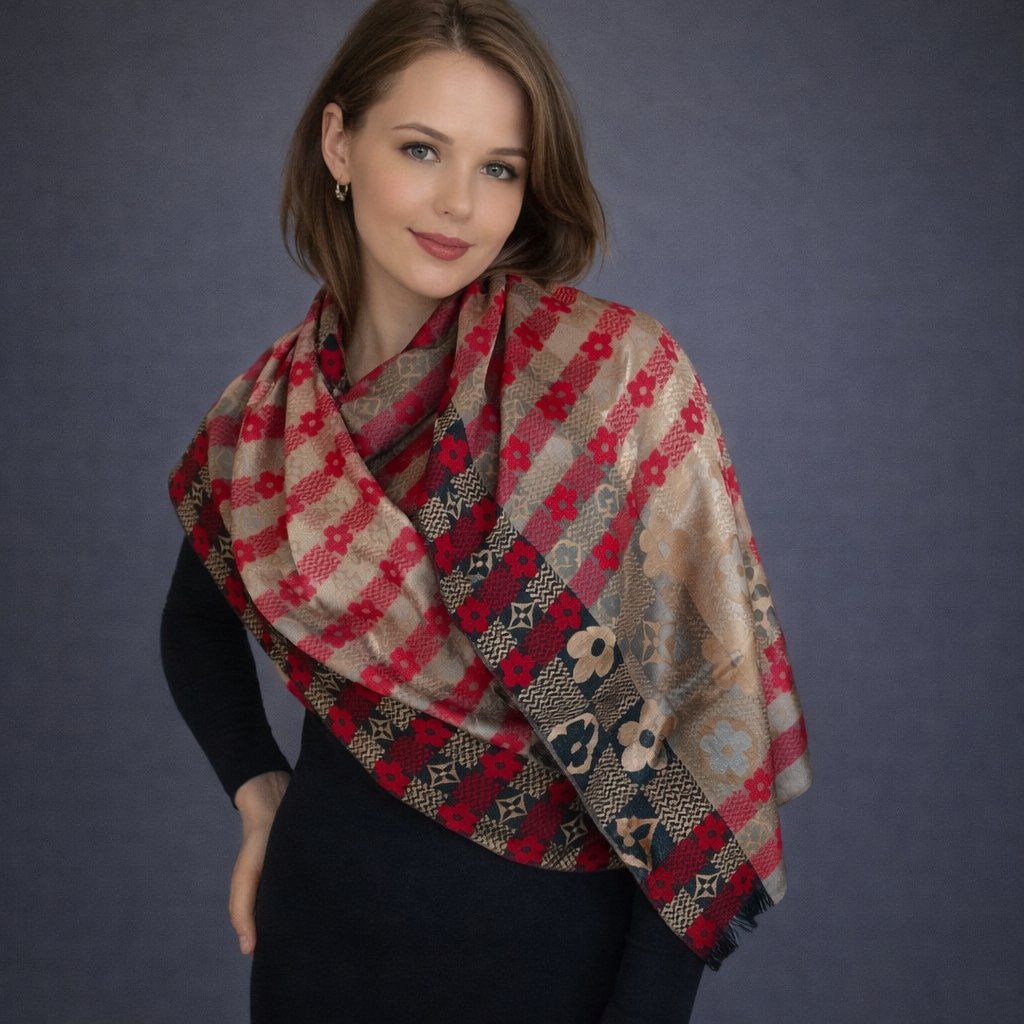 Dámský šátek 90 x 175 cm Květiny 23-12 - červený