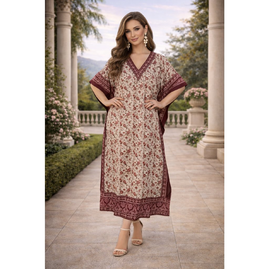 Dress, long kaftan HEART coffee