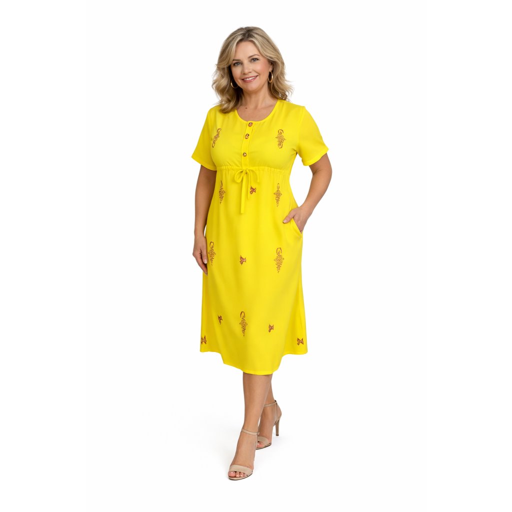 NEW - Dress with sleeves and oriental embroidery - yellow