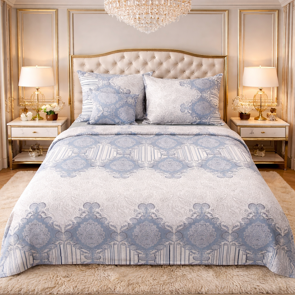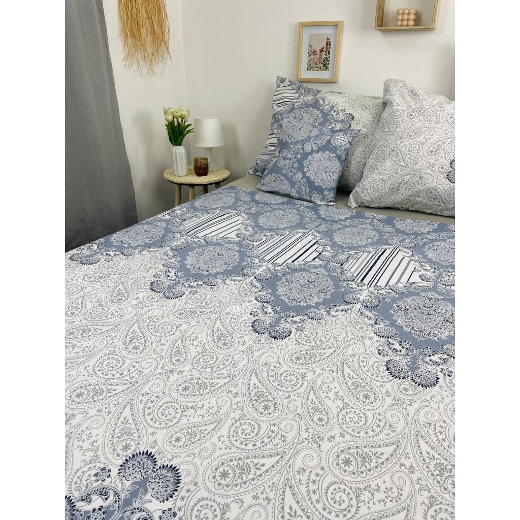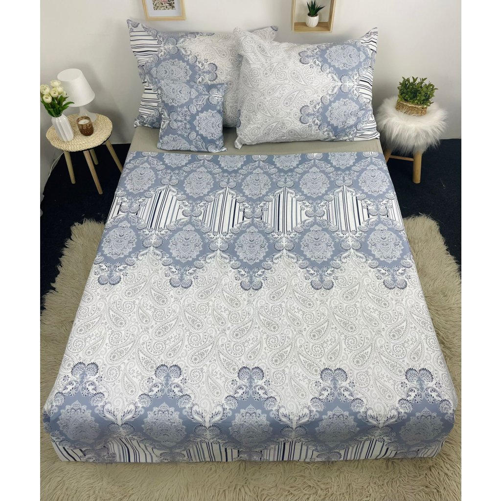 Francouzské bavlněné povlečení - Ornament a pruhy