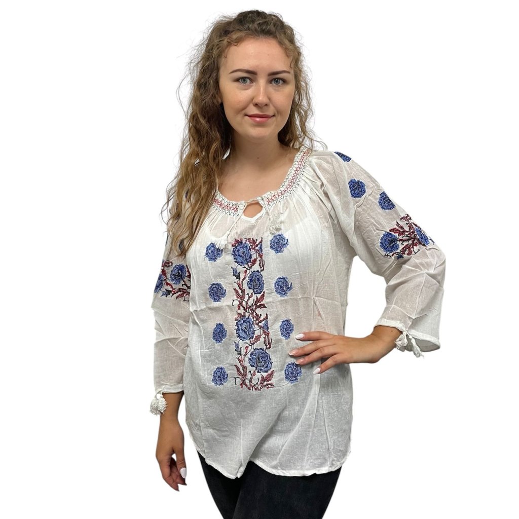Velmi lehká a příjemná halenka s výšivkou. Halenka je vyrobena ze 100% bavlny. Druhá jakost z důvodu možnosti lehkého zašpinění.