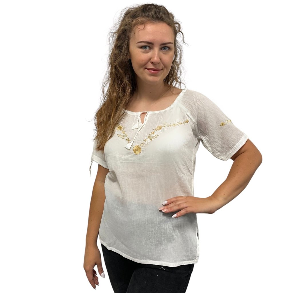 Velmi lehká a příjemná halenka s výšivkou. Halenka je vyrobena ze 100% bavlny. Druhá jakost z důvodu možnosti lehkého zašpinění.