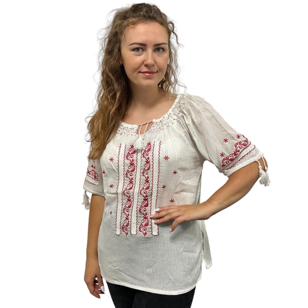 Velmi lehká a příjemná halenka s výšivkou. Halenka je vyrobena ze 100% bavlny. Druhá jakost z důvodu možnosti lehkého zašpinění.