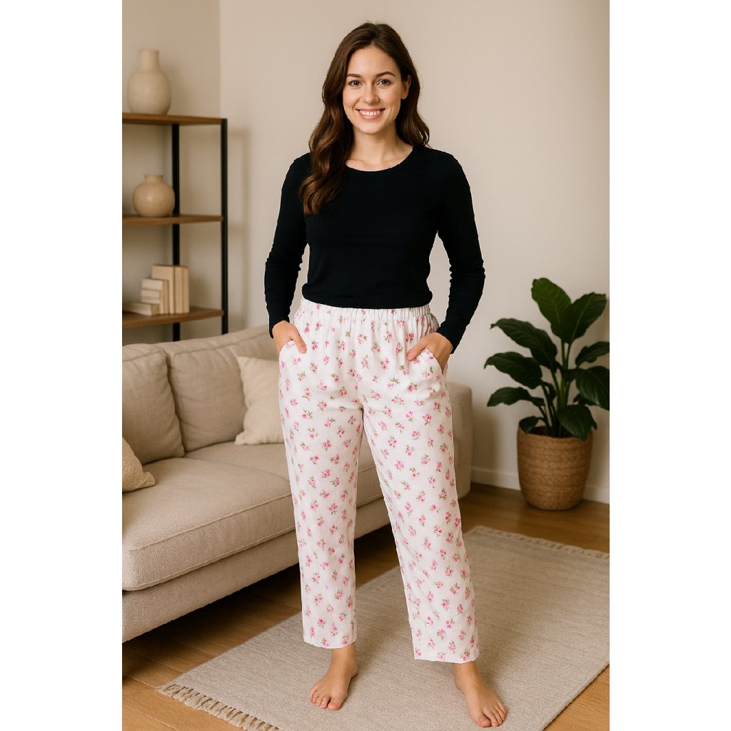Dámské kalhoty 1754 - bílé s červenými květy-Sale