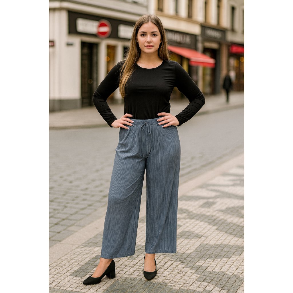 Dámské plisované volné kalhoty 911-101 - tm. šedé-Sale