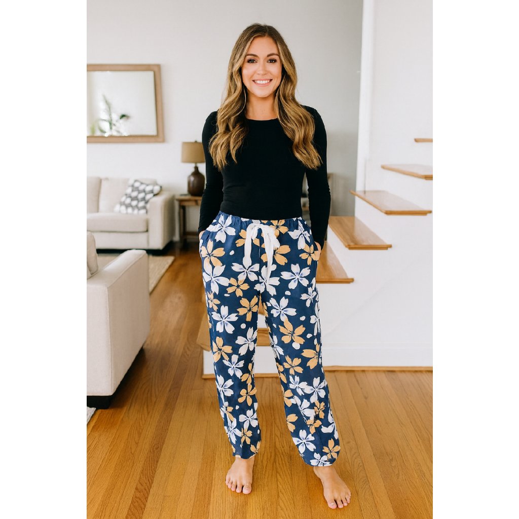 Sale-Veselé dámské kalhoty, domácí kalhoty RM2 - tm. šedé s květy